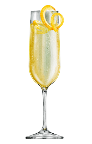 A sparkling sip today for prosperity tomorrow! Brandy, lemon juice, simple syrup, a splash of bitters, and fill to the brim with sparkling wine. Garnished with a curl of lemon peel.